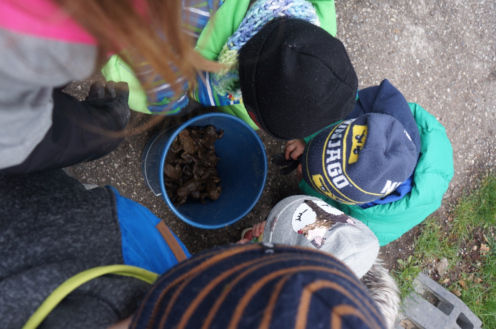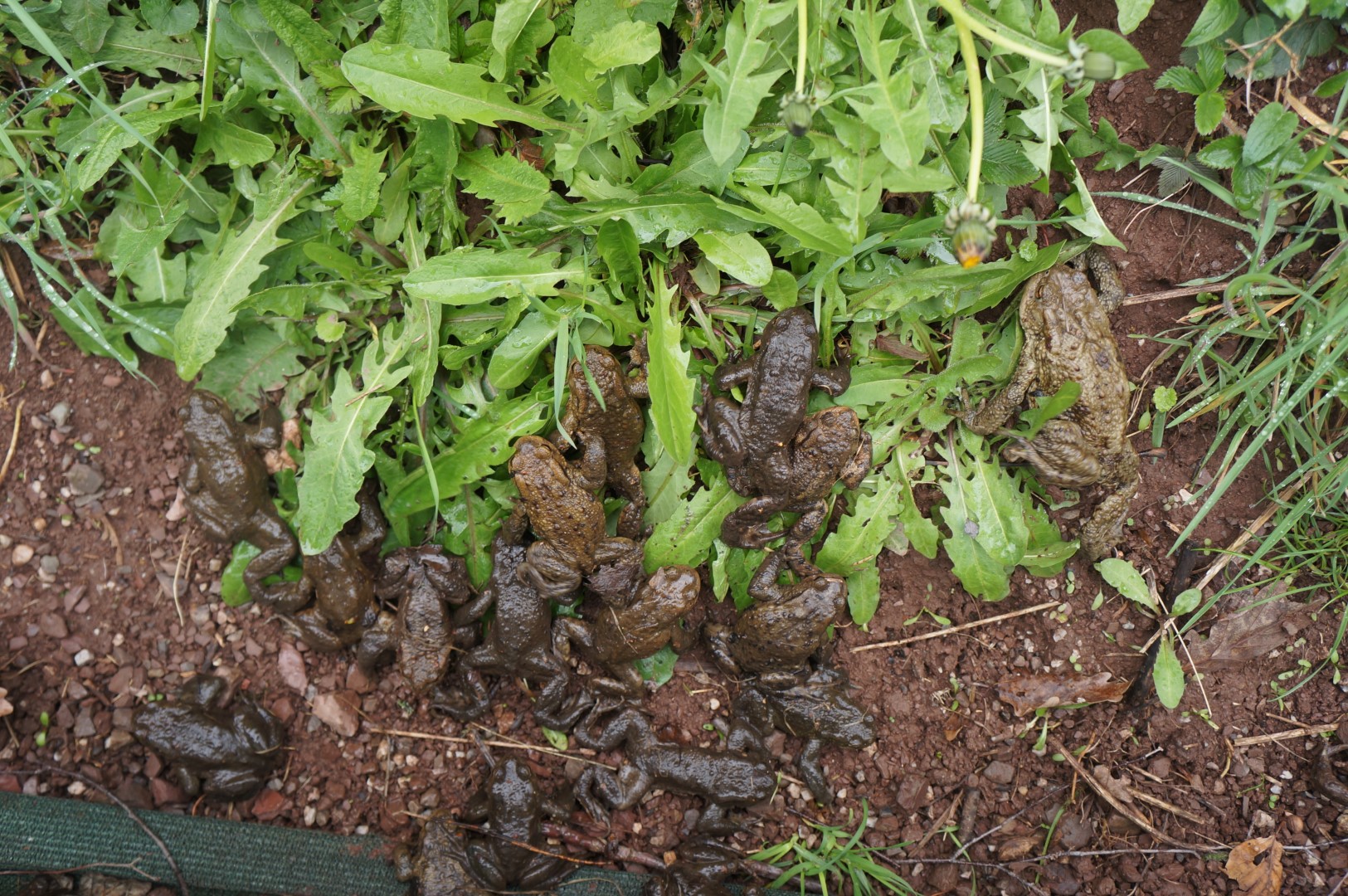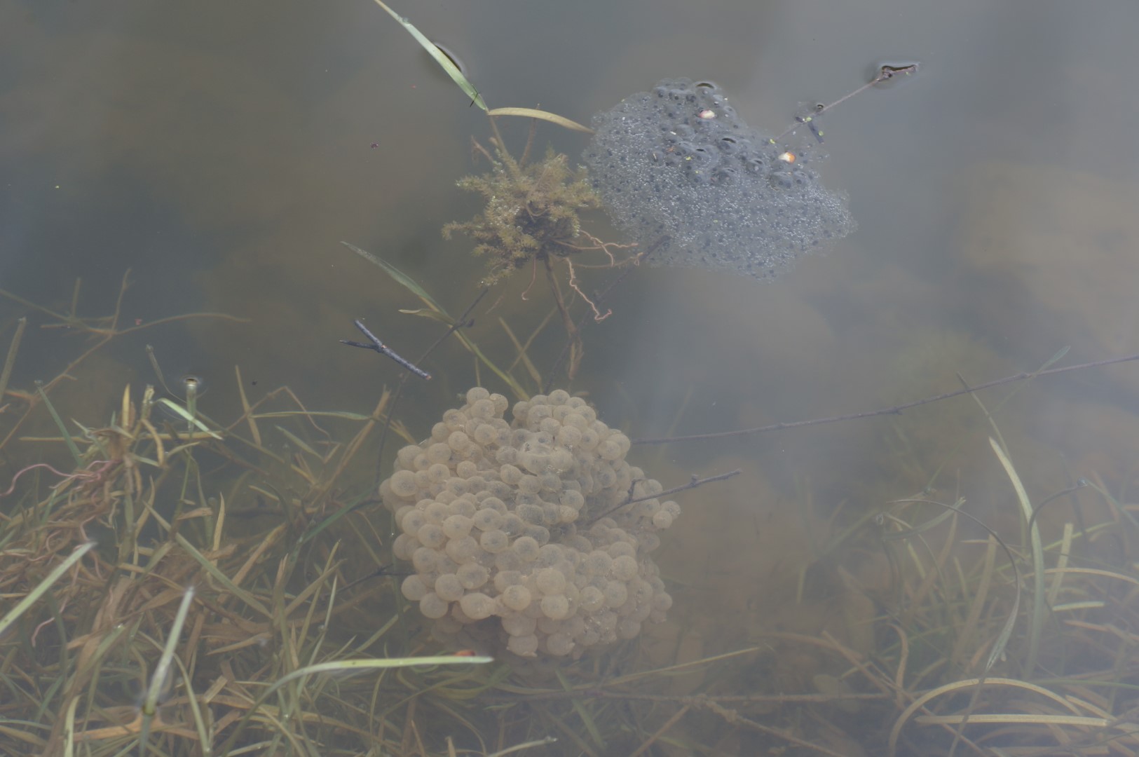 Die zum Teich wandernden Kröten haben wir direkt am Schlossteich rausgelassen. Bereits viele Kröten und Frösche haben in den See abgelaicht. Wir konnten mit eigenen Augen im Wasser den Laich der Grünfrösche, der Laubfrösche und der Kröten sehen.