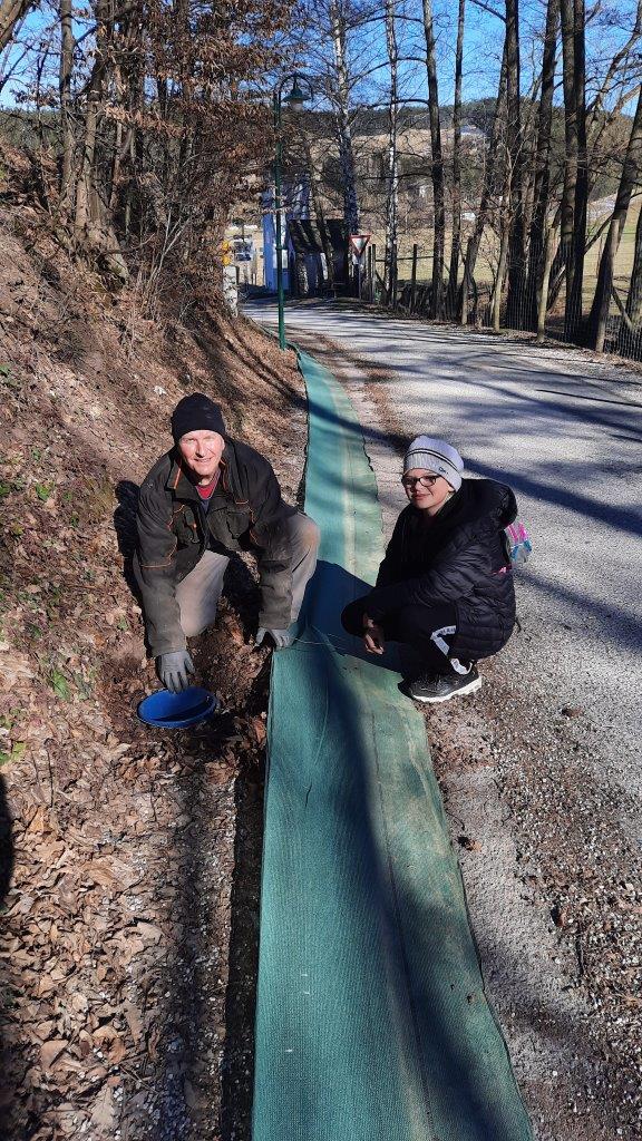 Am 06.03.2021 wurde in Schrattenbach wieder der Krötenzaun aufgestellt und die Kübeln eingegraben.